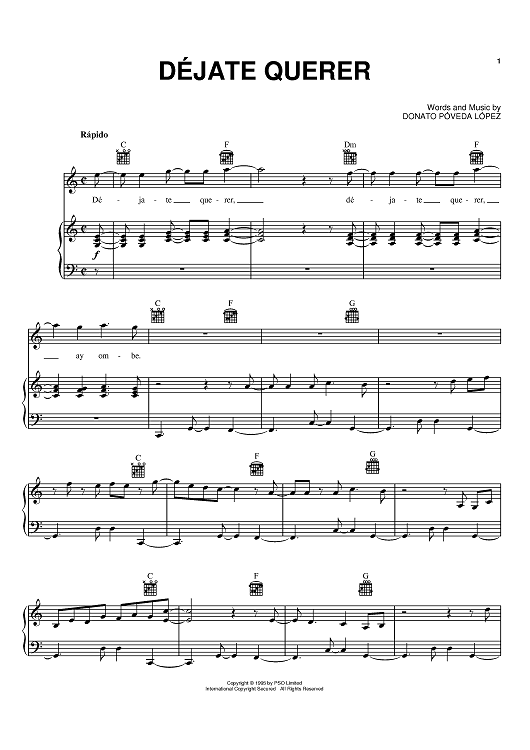 "Dejate Querer" Sheet Music by Donato Poveda Lopez