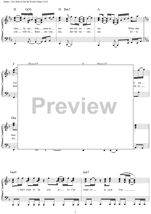 Digital Sheet Music for Do I Have to Say the Words? by Bryan Adams, Robert Lange, Jim Vallance scored for Piano/Vocal/Chords; id:154848