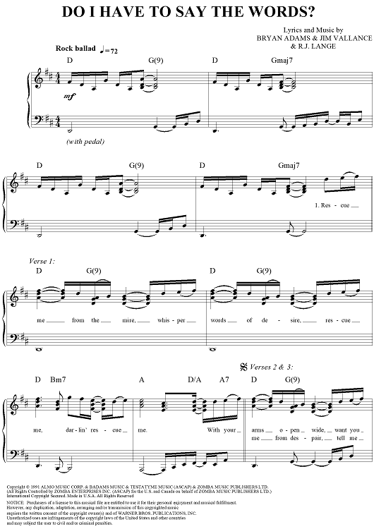 "Do I Have to Say the Words?" Sheet Music by Bryan Adams