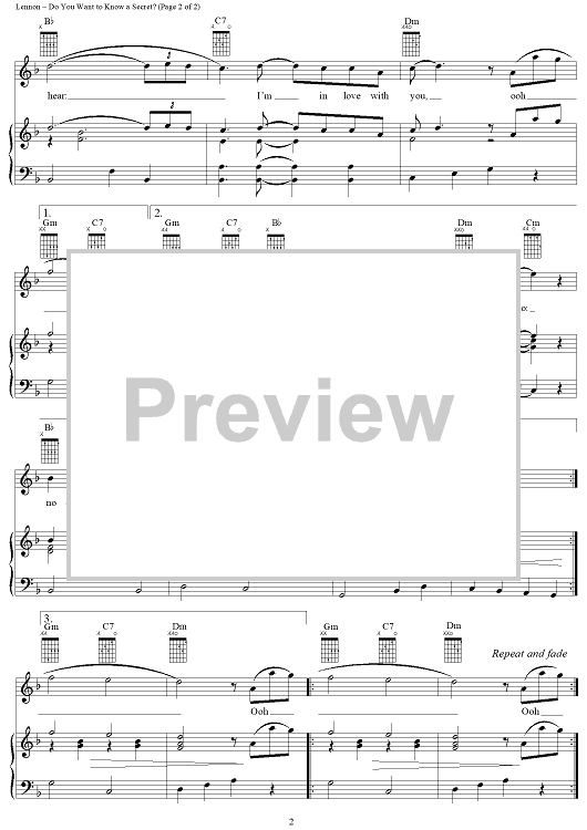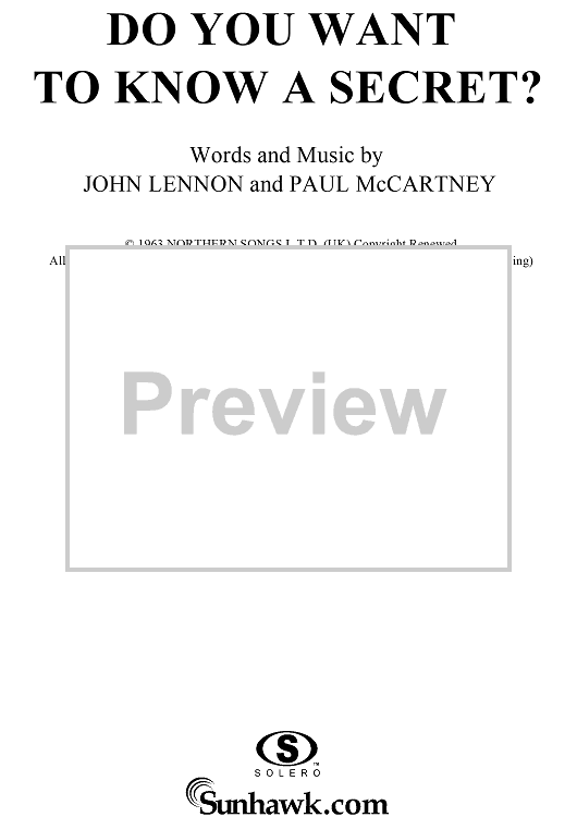 Digital Sheet Music for Do You Want to Know a Secret? by Paul McCartney, The Beatles, John Lennon scored for Piano/Vocal/Chords; id:117859