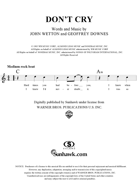 "Don't Cry" Sheet Music by Asia