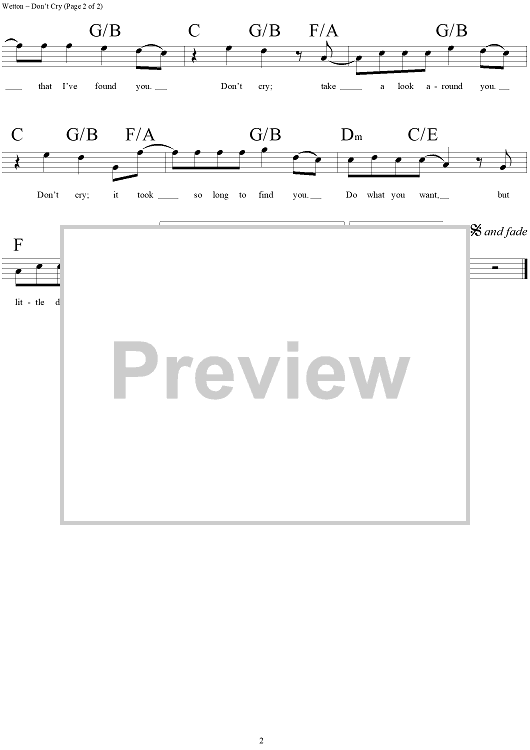 Digital Sheet Music for Don't Cry by Geoff Downes, Asia, John Wetton scored for Lead Sheet; id:120874