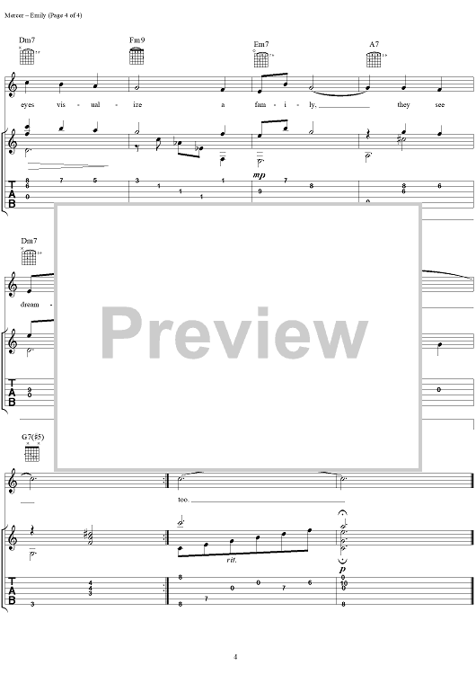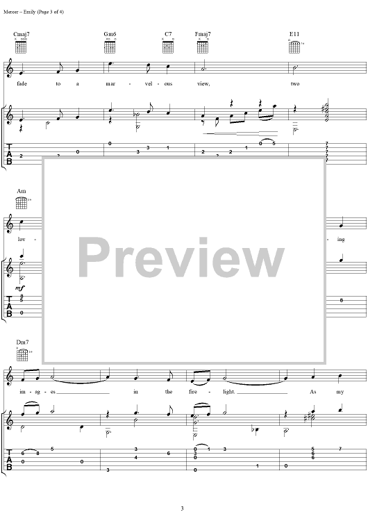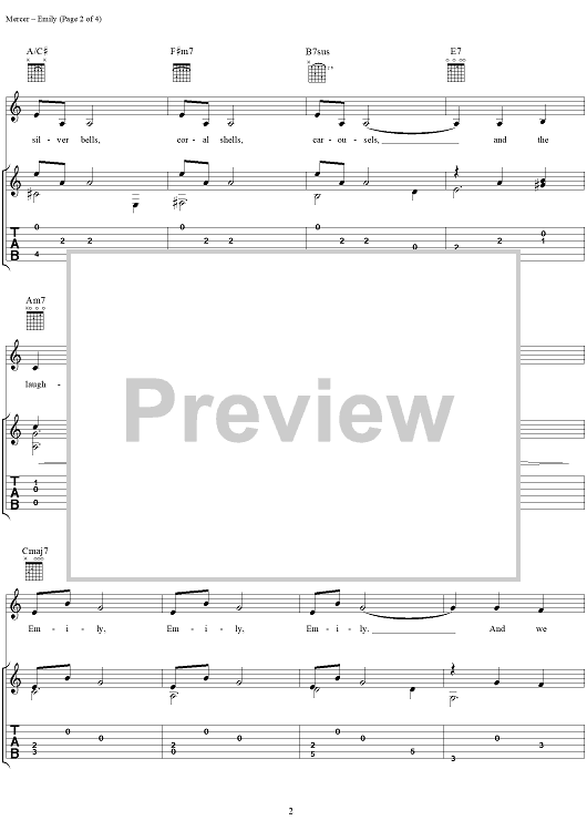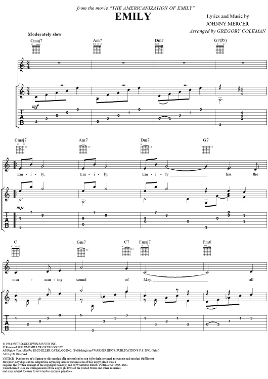 Digital Sheet Music for Emily by Johnny Mercer, Gregory Coleman scored for Guitar Tab/Vocal; id:120291