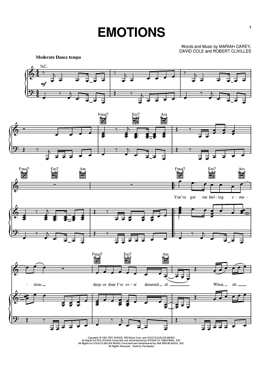 Digital Sheet Music for Emotions by Mariah Carey, Robert Clivilles, David Cole scored for Piano/Vocal/Chords; id:391712