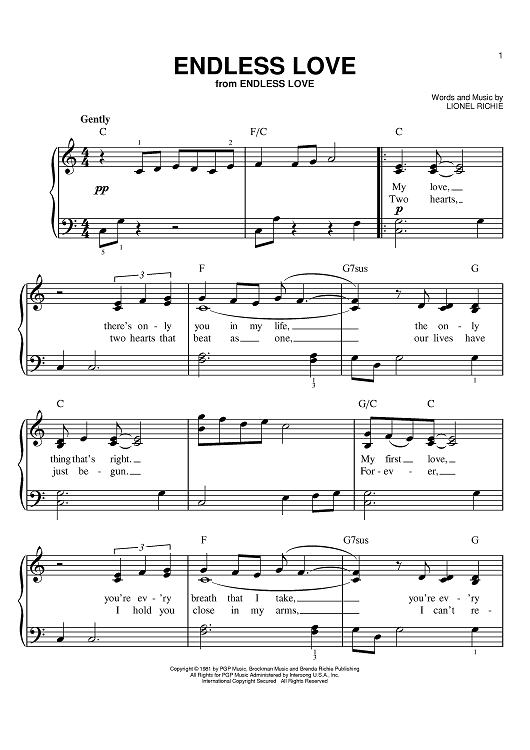 Digital Sheet Music for Endless Love by Lionel Richie, Diana Ross, Luther Vandross scored for Easy Piano; id:373938