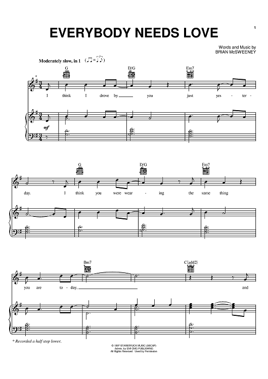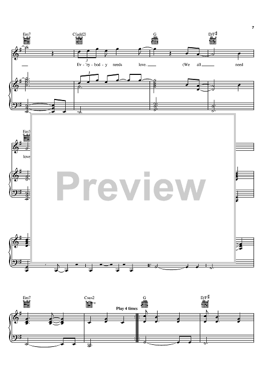 Digital Sheet Music for Everybody Needs Love by Brian McSweeny, Seven Day Jesus scored for Piano/Vocal/Chords; id:388151