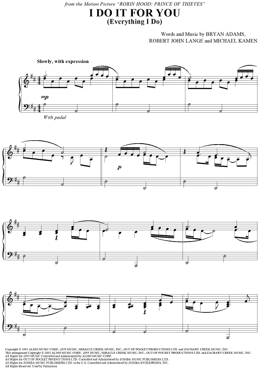 Digital Sheet Music for (Everything I Do) I Do It for You by Bryan Adams, Michael Kamen, Robert Lange scored for Piano Solo; id:371564