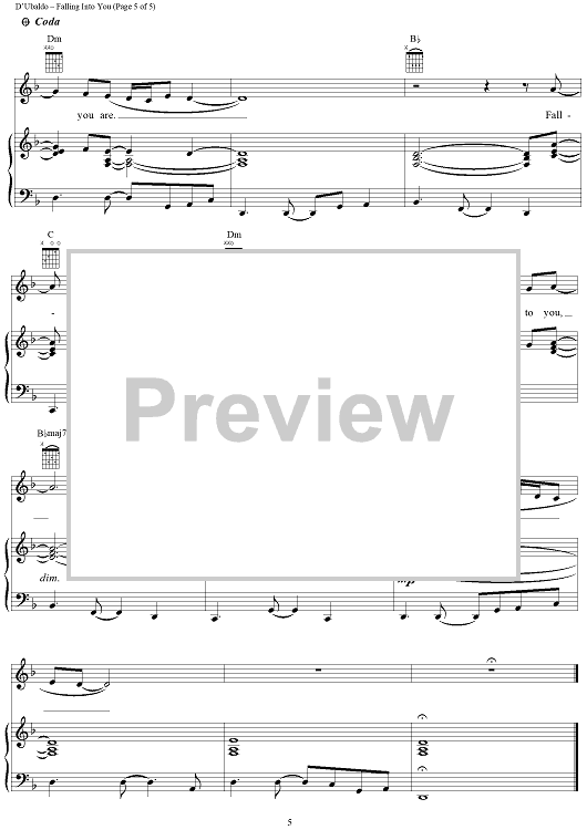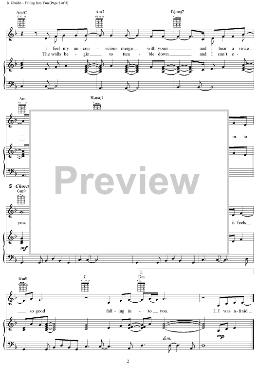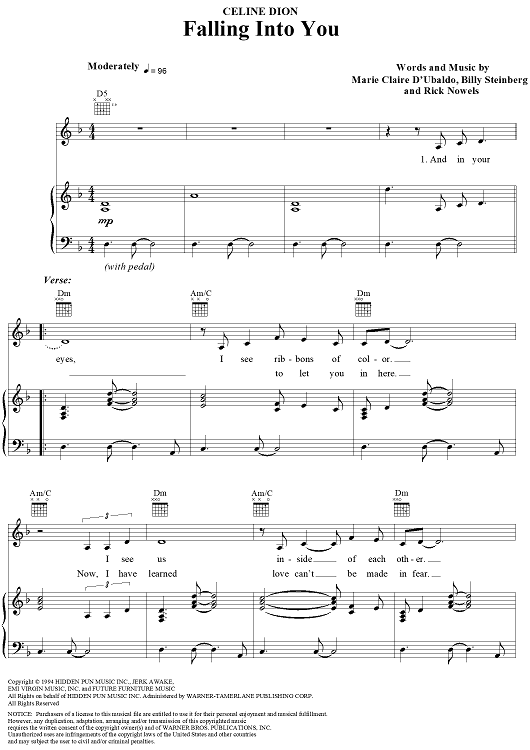 Digital Sheet Music for Falling Into You by Celine Dion, Billy Steinberg, Marie Claire D'Ubaldo, Rick Nowels scored for Piano/Vocal/Chords; id:111814
