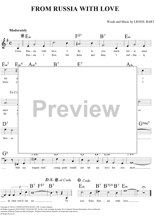 Digital Sheet Music for From Russia With Love by Lionel Bart, Matt Terry Parsons Monro scored for Lead Sheet; id:110152