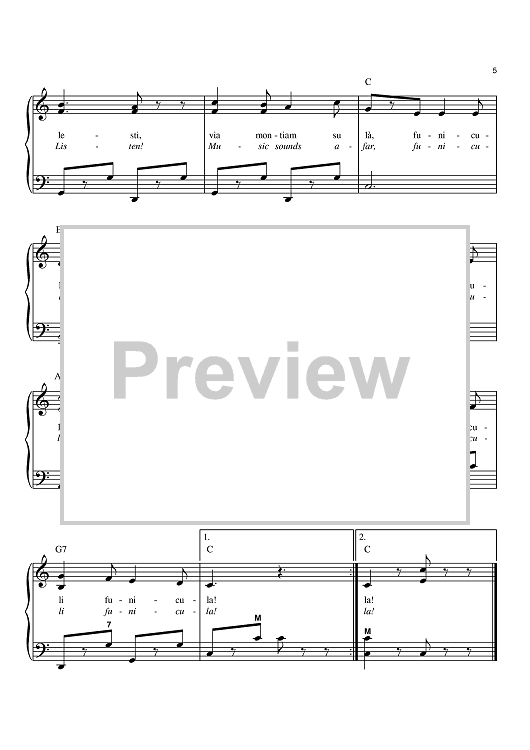 Digital Sheet Music for Funiculi, Funicula by Luciano Pavarotti, Mario Lanza, Luigi Denza scored for Easy Piano; id:381054
