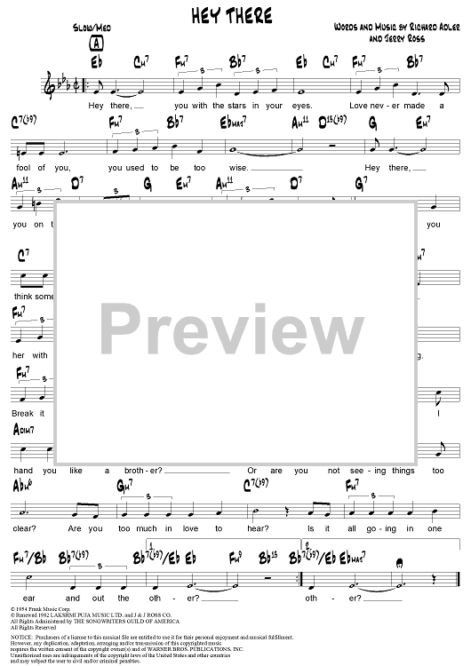 Digital Sheet Music for Hey There by Jerry Ross, Richard Adler scored for Lead Sheet; id:312217