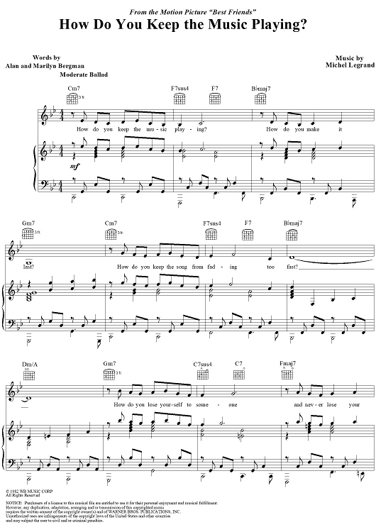 Digital Sheet Music for How Do You Keep the Music Playing? by Michel LeGrand, Alan Bergman, Marilyn Bergman scored for Piano/Vocal/Chords; id:112812