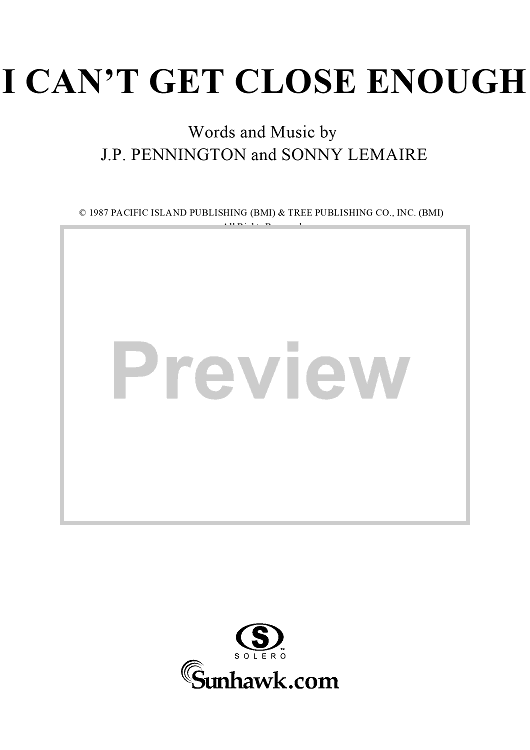 Digital Sheet Music for I Can't Get Close Enough by Exile, James P. Pennington, Sonny LeMaire scored for Piano/Vocal/Chords; id:120333