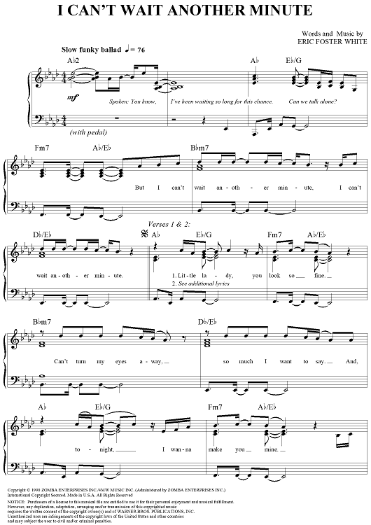 "I Can't Wait Another Minute" Sheet Music by Eric Foster White