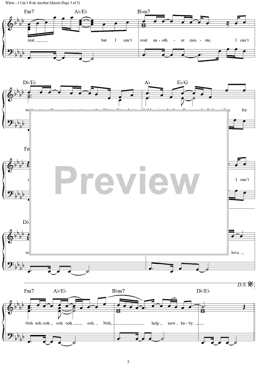 Digital Sheet Music for I Can't Wait Another Minute by Eric Foster White scored for Piano/Vocal/Chords; id:264166