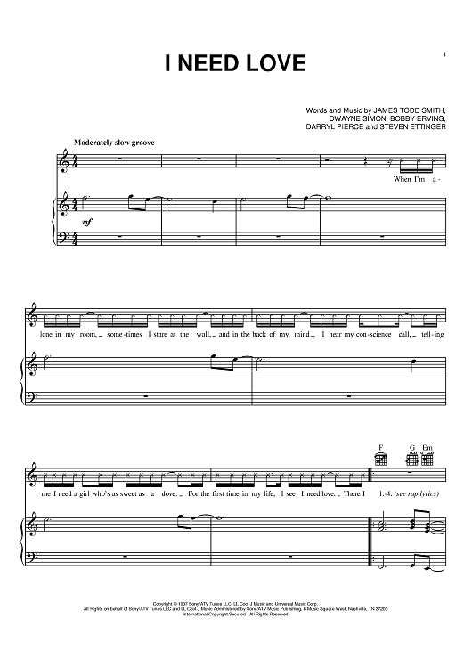 "I Need Love" Sheet Music by LL Cool J