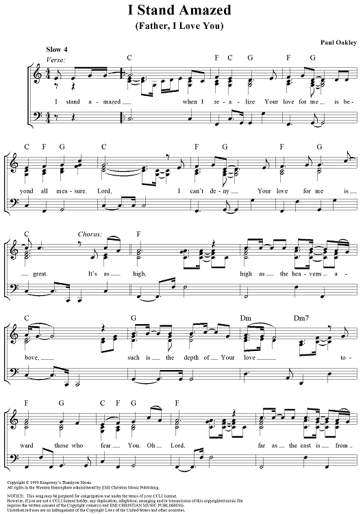 Digital Sheet Music for I Stand Amazed (Father, I Love You) by Paul Oakley scored for Piano/Vocal/Chords; id:186220