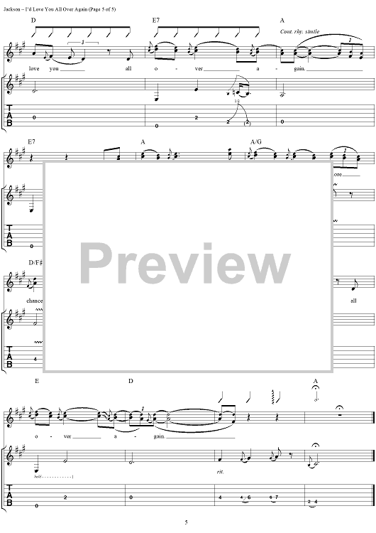"I'd Love You All Over Again" Sheet Music by Al Jackson Jr