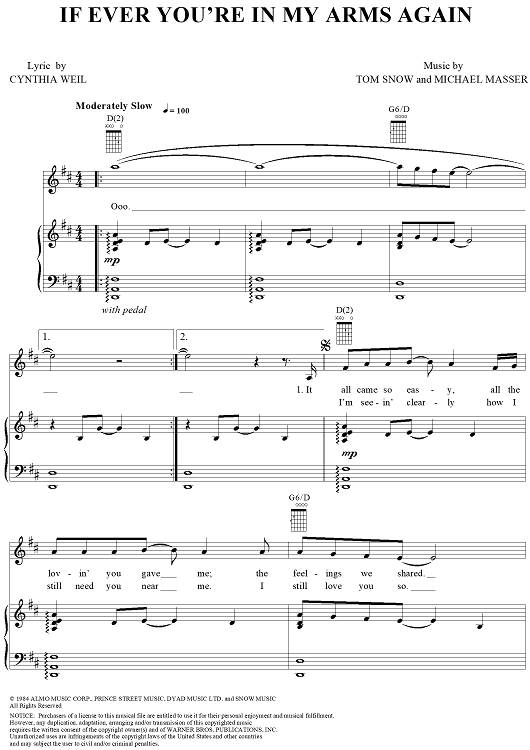 Digital Sheet Music for If Ever You're In My Arms Again by Michael Masser, Peter Cetera, Tom Snow, Cynthia Weil, Amy Grant scored for Piano/Vocal/Chords; id:113724