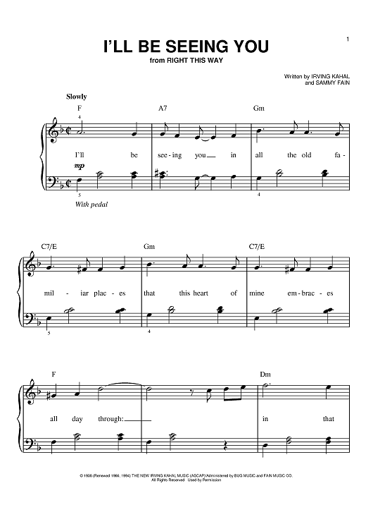Digital Sheet Music for I'll Be Seeing You by Sammy Fain, Irving Kahal scored for Easy Piano; id:390465