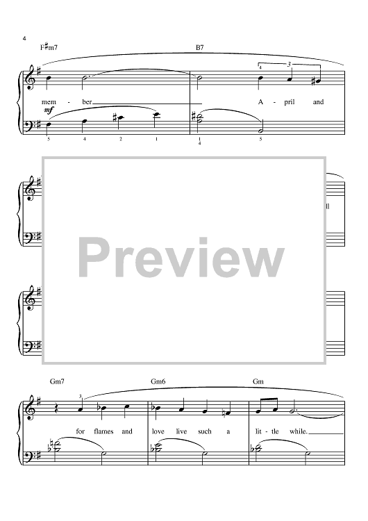 Digital Sheet Music for I'll Remember April by Woody Herman, Don Raye, Gene De Paul, Pat Johnson, Phillip Keveren scored for Easy Piano; id:392248