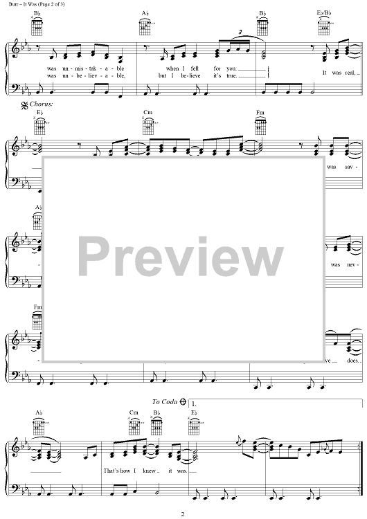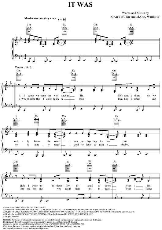 Digital Sheet Music for It Was by Gary Burr, Mark Wright, Chely Wright scored for Piano/Vocal/Chords; id:191172