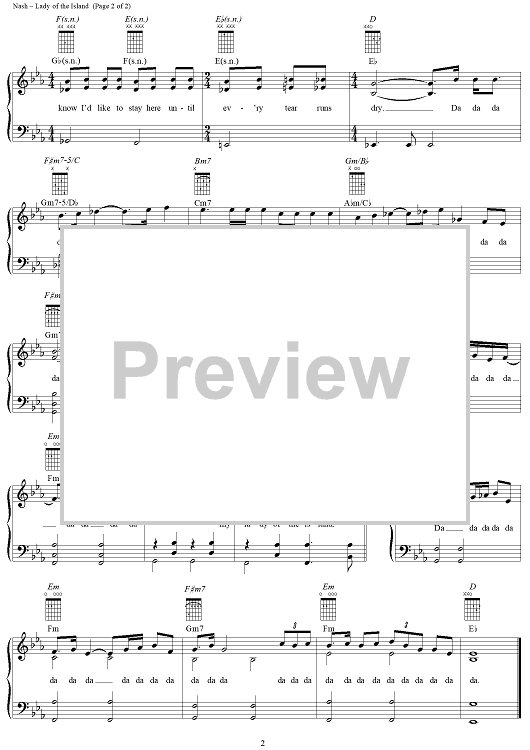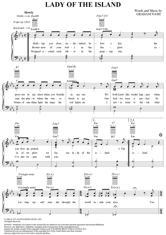 Digital Sheet Music for Lady Of The Island by Graham Nash, Crosby, Stills & Nash scored for Piano/Vocal/Chords; id:112251