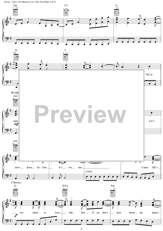 "Life's Too Short to Love This Fast" Sheet Music by Alabama