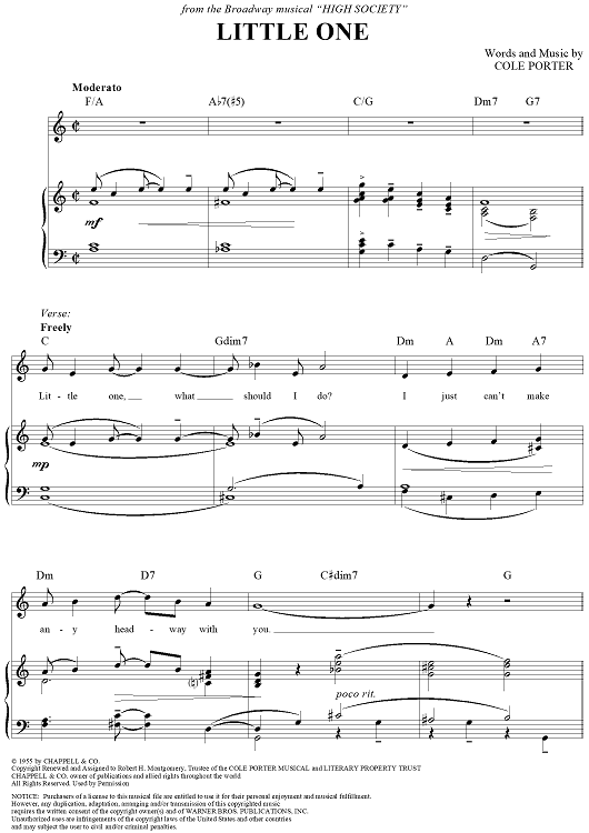 Digital Sheet Music for Little One by Cole Porter scored for Piano/Vocal/Chords; id:204370