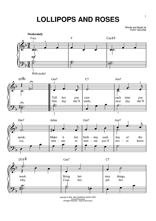 Digital Sheet Music for Lollipops And Roses by Tony Velona, Jack Jones scored for Easy Piano; id:390471