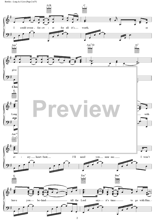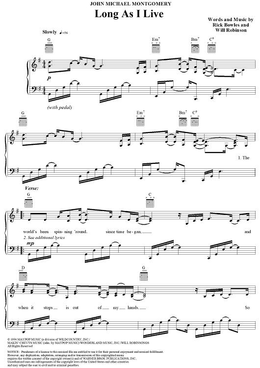 Digital Sheet Music for Long As I Live by John Michael Montgomery, Rick Bowles, Will Robinson scored for Piano/Vocal/Chords; id:110328