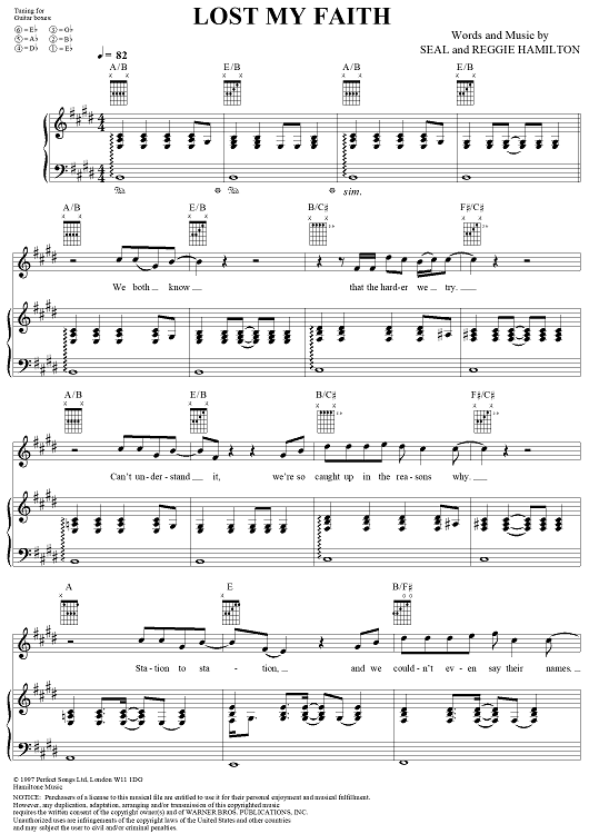 Digital Sheet Music for Lost My Faith by Reggie Hamilton, Seal scored for Piano/Vocal/Chords; id:241692