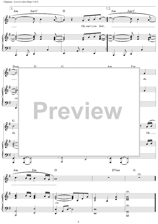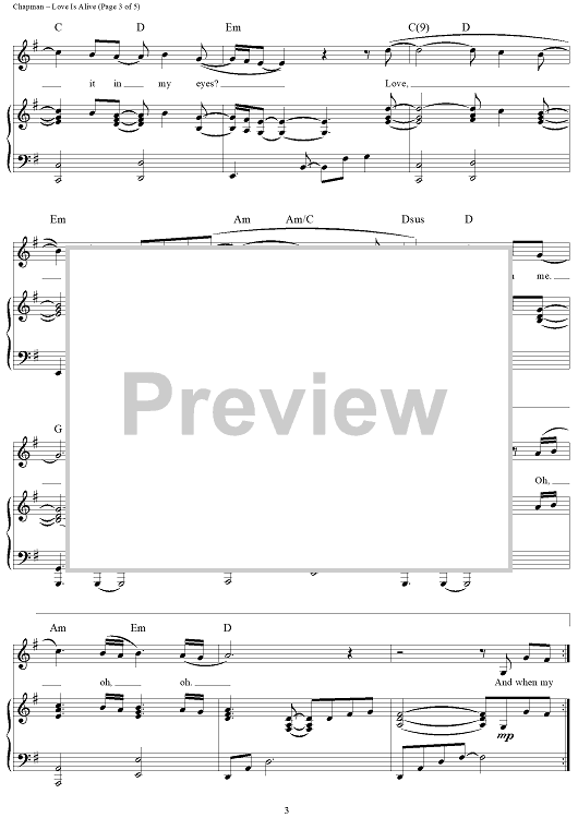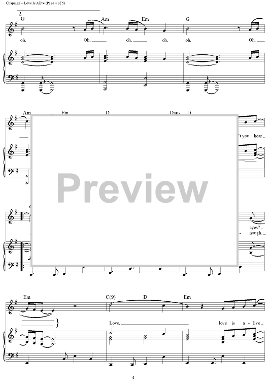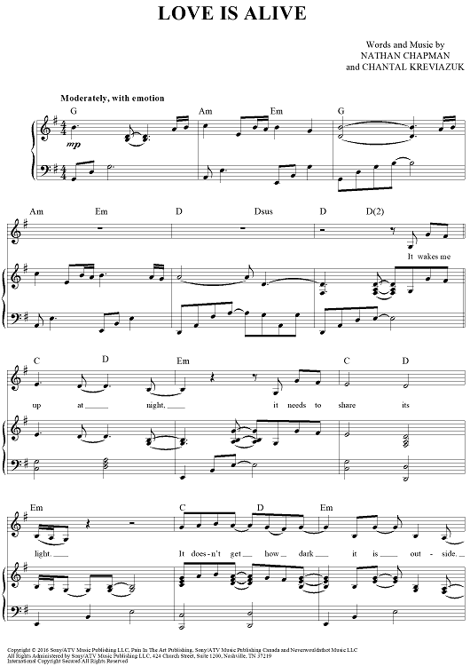 Digital Sheet Music for Love Is Alive by Chantal Kreviazuk, Nathan Chapman, Lea Michele scored for Piano/Vocal/Chords; id:464111
