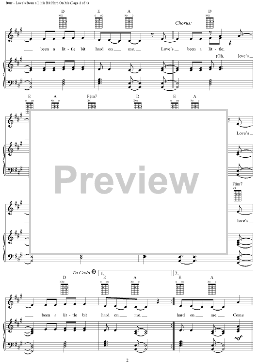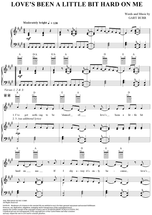 Digital Sheet Music for Love's Been a Little Bit Hard On Me by Gary Burr, Juice Newton scored for Piano/Vocal/Chords; id:127065