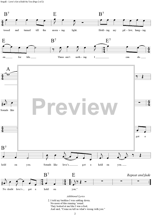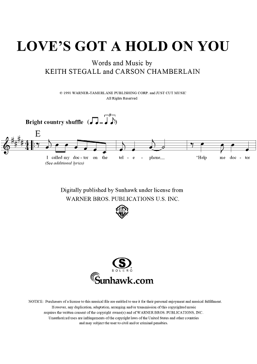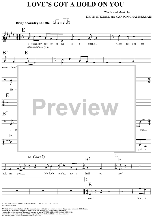 Digital Sheet Music for Love's Got A Hold On You by Carson Chamberlain, Keith Stegall, Al Jackson Jr scored for Lead Sheet; id:119923
