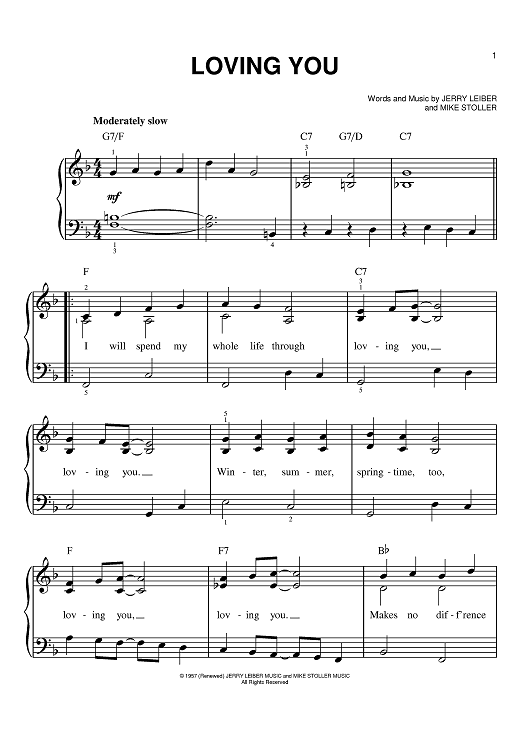 Digital Sheet Music for Loving You by Elvis Presley, Jerry Leiber, Mike Stoller scored for Easy Piano; id:390475