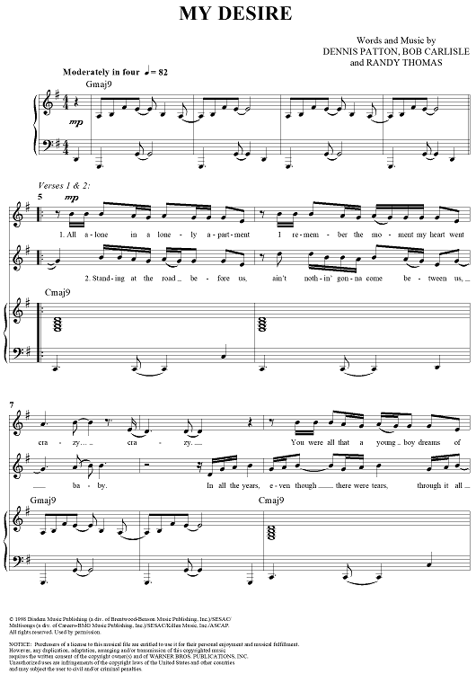 Digital Sheet Music for My Desire by Randy Thomas, Bob Carlisle, Dennis Patton scored for Piano/Vocal/Chords; id:254368