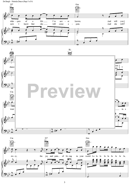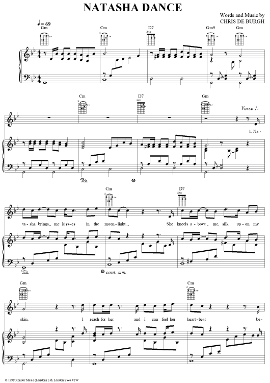 Digital Sheet Music for Natasha Dance by Chris DeBurgh scored for Piano/Vocal/Chords; id:241608