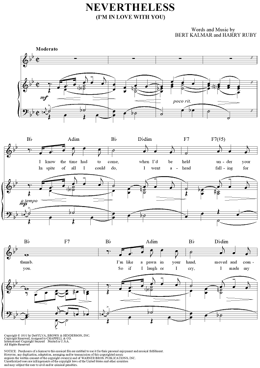 Digital Sheet Music for Nevertheless (I'm in Love With You) by Frank Sinatra, Bert Kalmar, Harry Ruby, Rudy Vallee scored for Piano/Vocal/Chords; id:112827