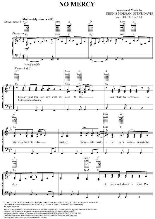 Digital Sheet Music for No Mercy by Ty Herndon, Todd Cerney, Steve Davis, Dennis Morgan scored for Piano/Vocal/Chords; id:191176