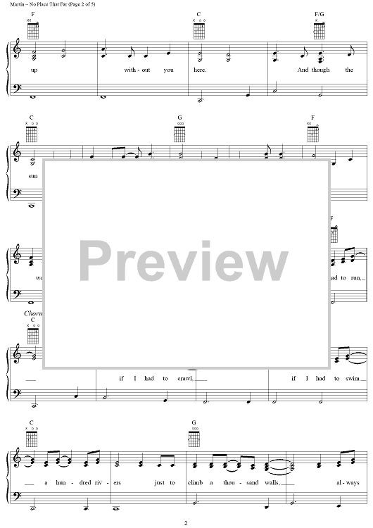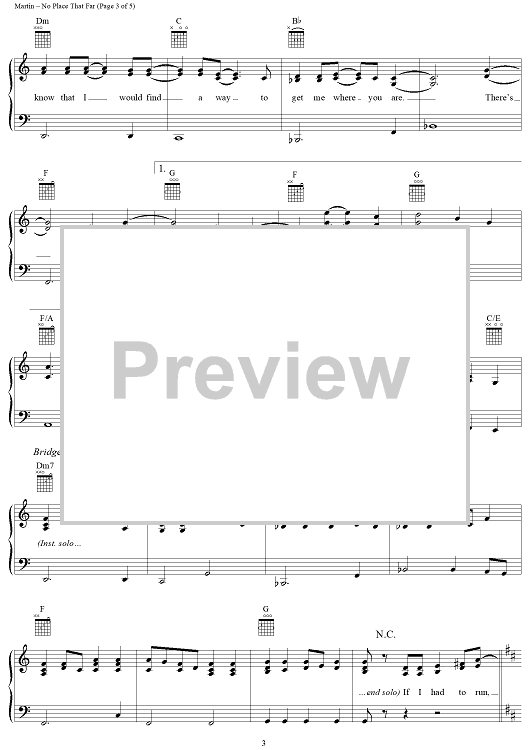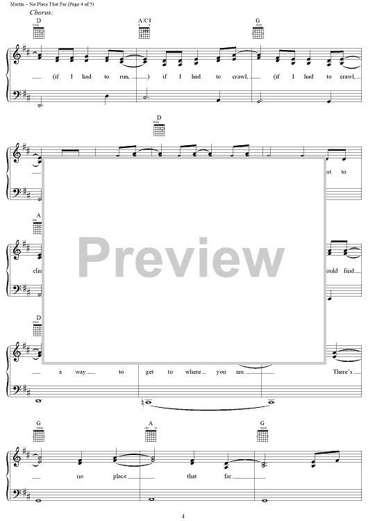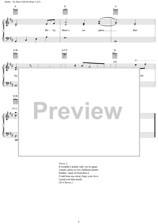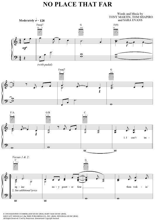 Digital Sheet Music for No Place That Far by Tony Martin, Sara Evans, Tom Shapiro scored for Piano/Vocal/Chords; id:114140