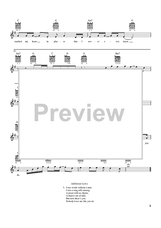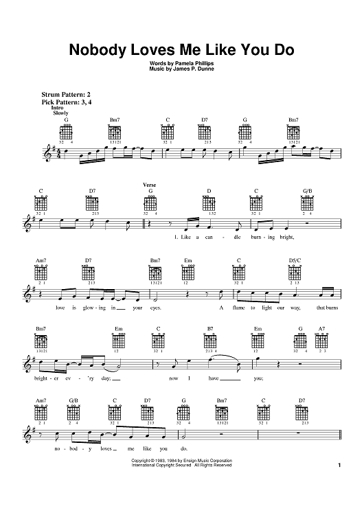 Digital Sheet Music for Nobody Loves Me Like You Do by James Patrick Dunne, Anne Murray, Pamela Phillips scored for Lead Sheet with Guitar Grids; id:383098