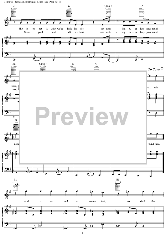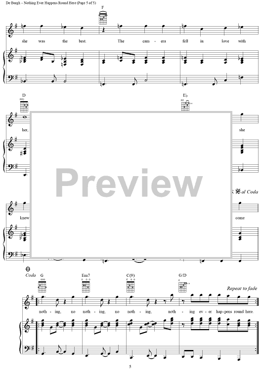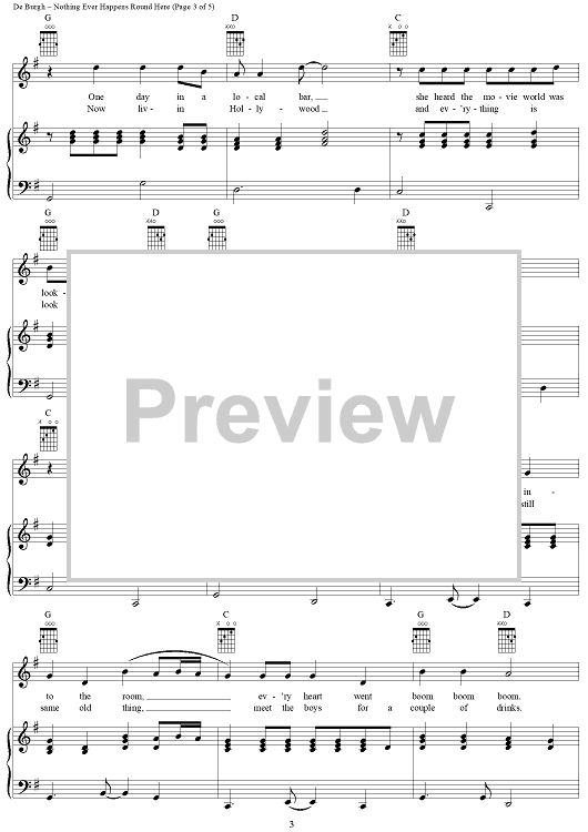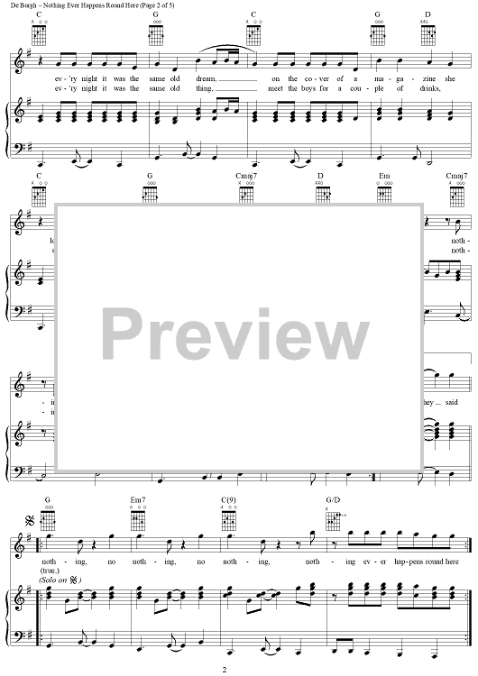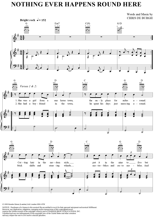 Digital Sheet Music for Nothing Ever Happens Round Here by Chris DeBurgh scored for Piano/Vocal/Chords; id:241601