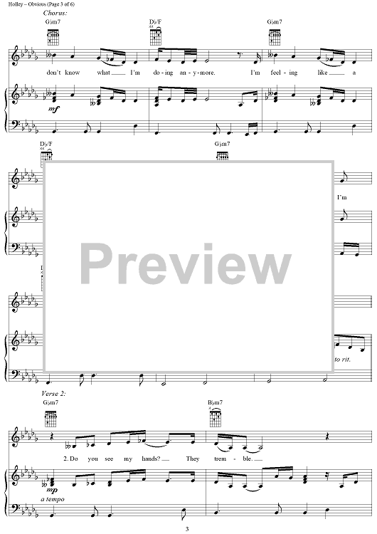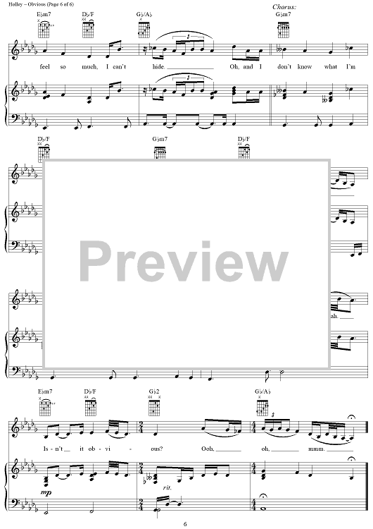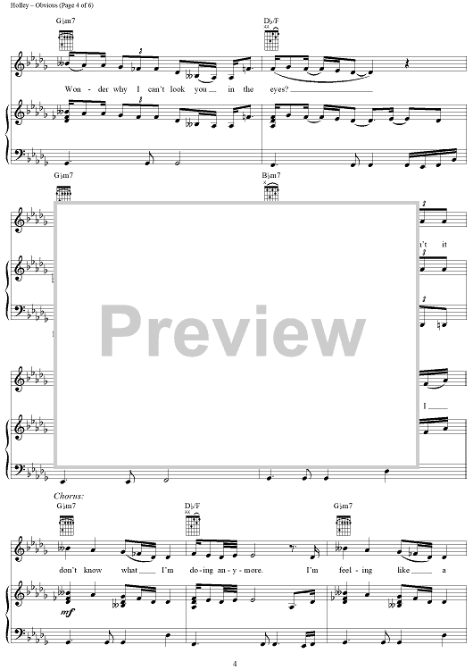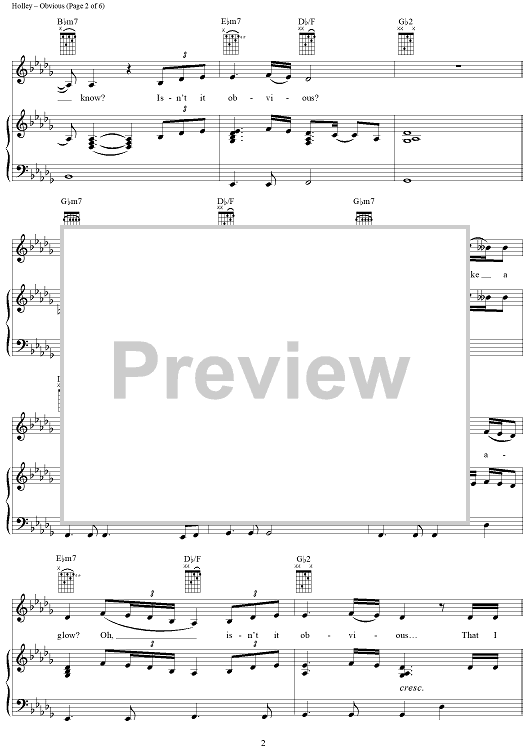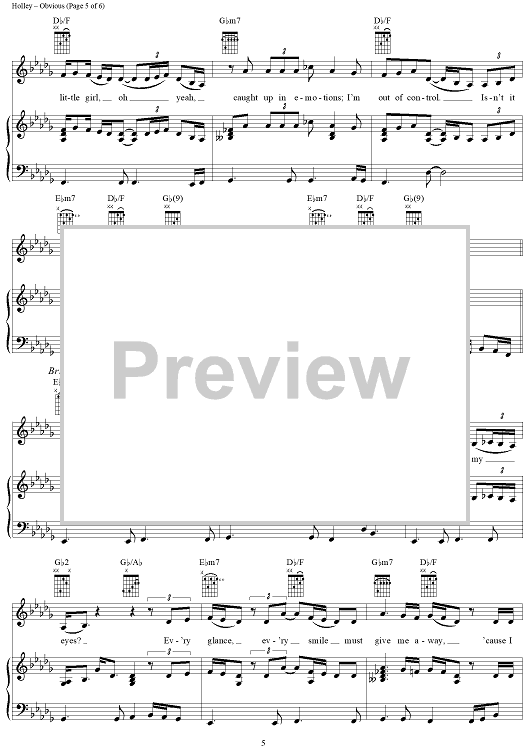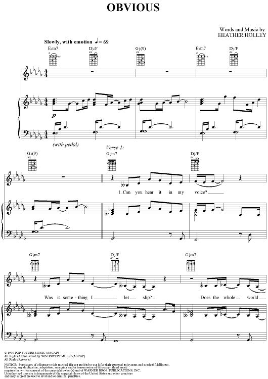 Digital Sheet Music for Obvious by Heather Holley, Christina Aguilera scored for Piano/Vocal/Chords; id:201467