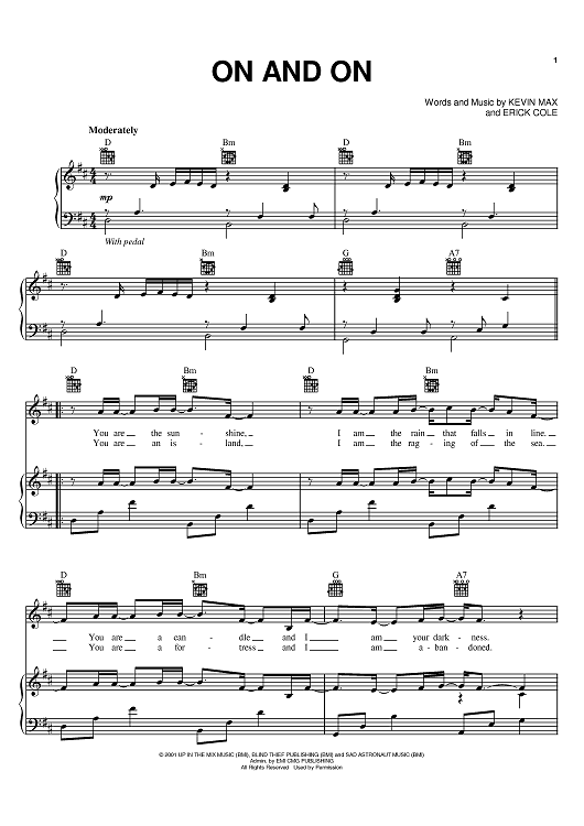 Digital Sheet Music for On And On by Erick Cole, Kevin Max scored for Piano/Vocal/Chords; id:388153