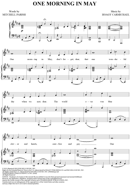 Digital Sheet Music for One Morning in May by Mitchell Parish, Hoagy Carmichael scored for Piano/Vocal; id:273344