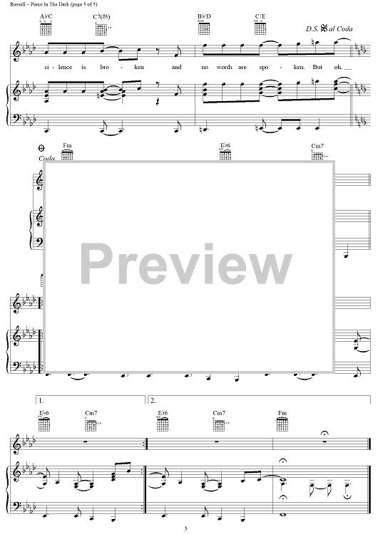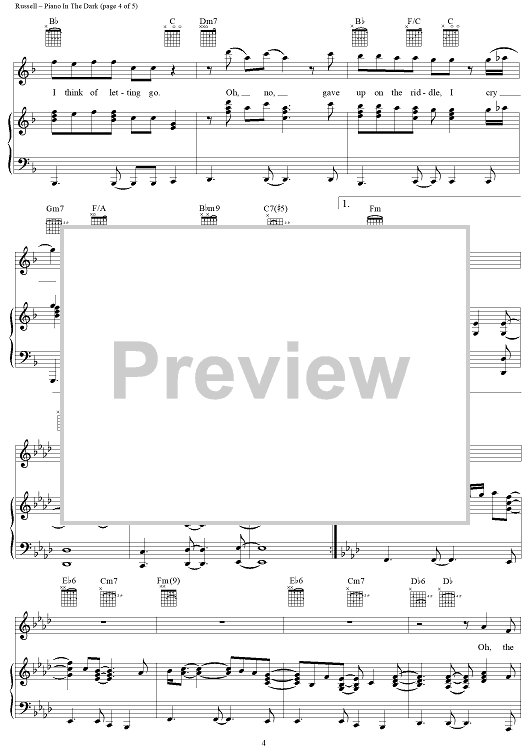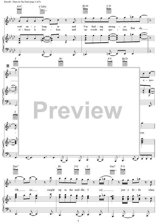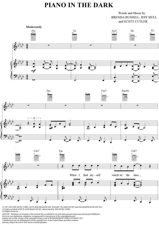 Digital Sheet Music for Piano in the Dark by Jeff Hull, Scott Cutler, Brenda Russell scored for Piano/Vocal/Chords; id:124306