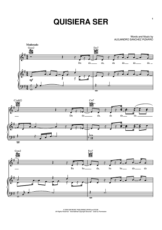 "Quisiera Ser" Sheet Music by Alejandro Sanchez Pizarro
