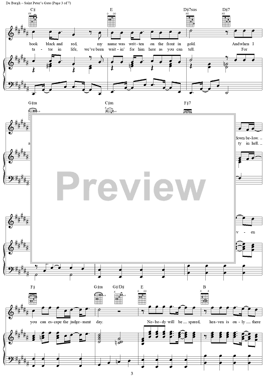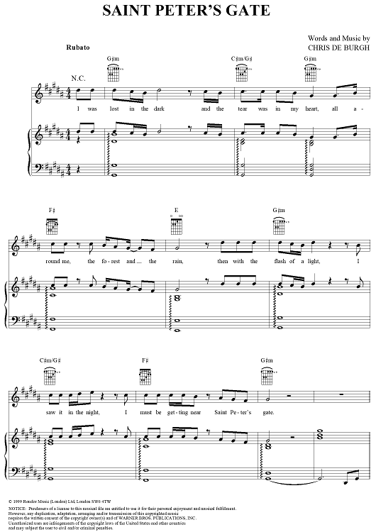 Digital Sheet Music for Saint Peter's Gate by Chris DeBurgh scored for Piano/Vocal/Chords; id:241605