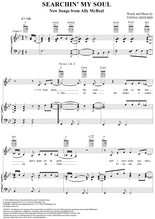Digital Sheet Music for Searchin' My Soul by Vonda Shepard scored for Piano/Vocal/Chords; id:241596